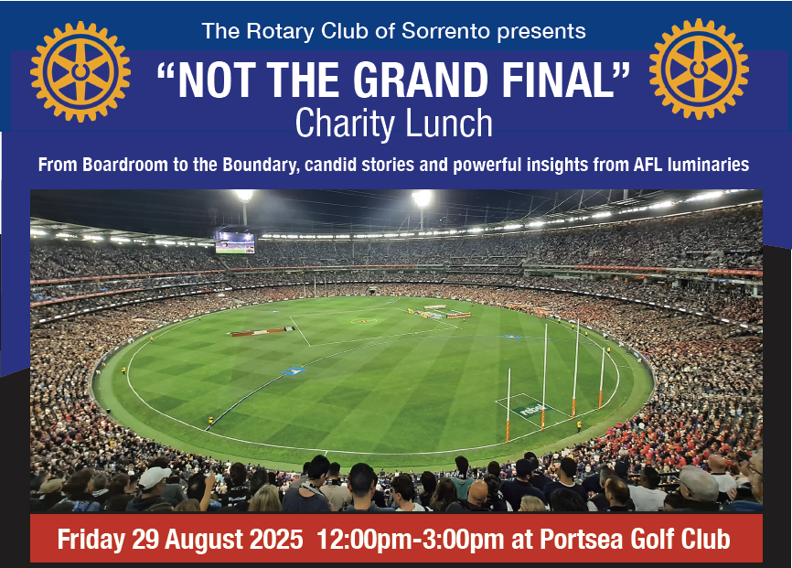 The Rotary Club of Sorrento presents “NOT THE GRAND FINAL” Charity Lunch From Boardroom to the Boundary, candid stories and powerful insights from AFL luminaries.